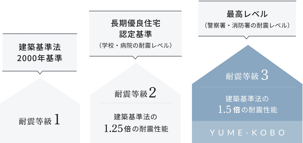 耐震等級3: 等級1の1.5倍の強度