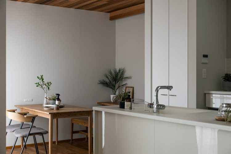 横並びにダイニングテーブルがあると、テーブルからキッチンが丸見えになってしまうことは避けられません。