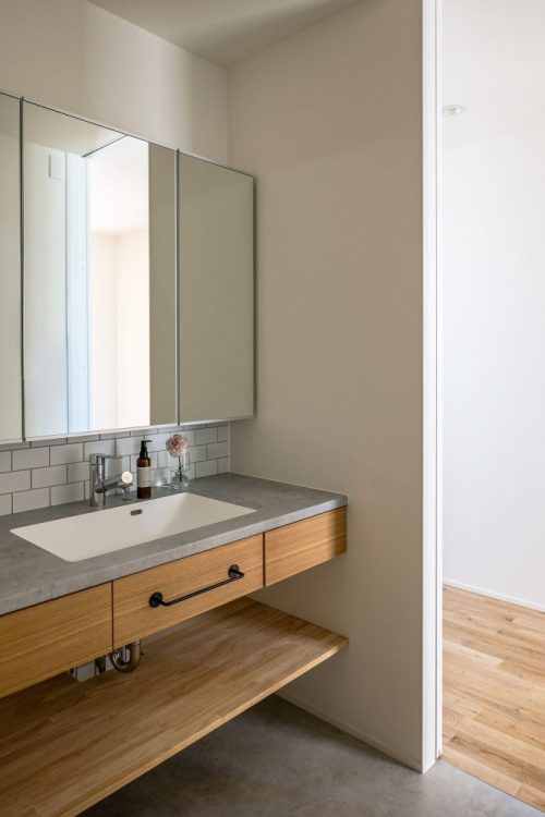空間を上手く利用して、限られたスペースを広く取り使い勝手のいい玄関に仕上がっています。
