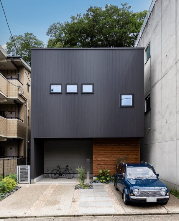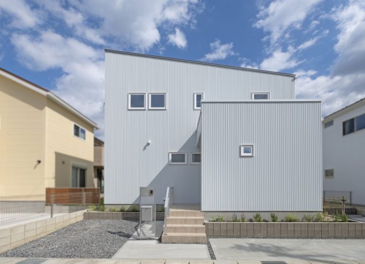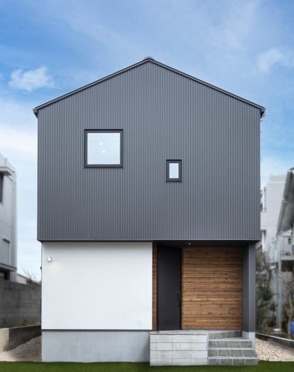 勾配の緩い切妻屋根や片流れ屋根は、正面からは陸屋根のようなイメージをつくることも可能です。