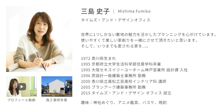 担当建築家「三島史子先生」のご紹介