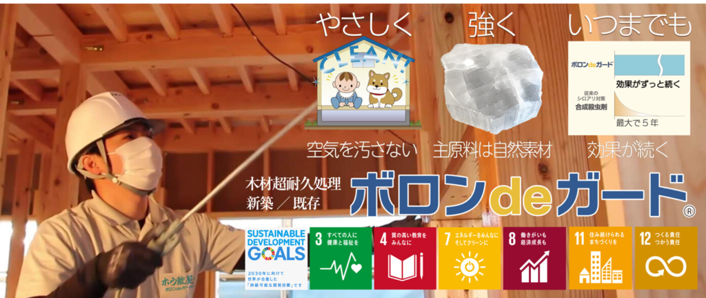 お家が浸水してしまうことがなければ半永久的にあり続けるホウ酸を使用したボロンデガード社を採用しています。