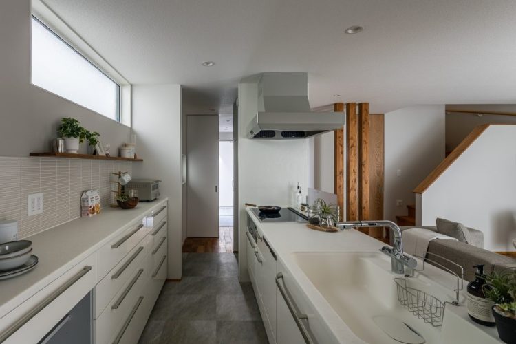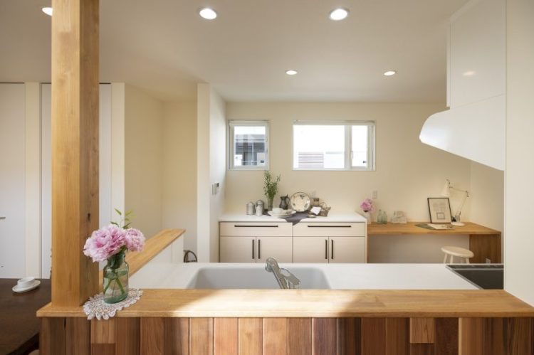 お子さんが宿題をしている様子を見ながら、夕飯の支度やちょっとしたリモートワークができる空間は、共働き家族の味方。