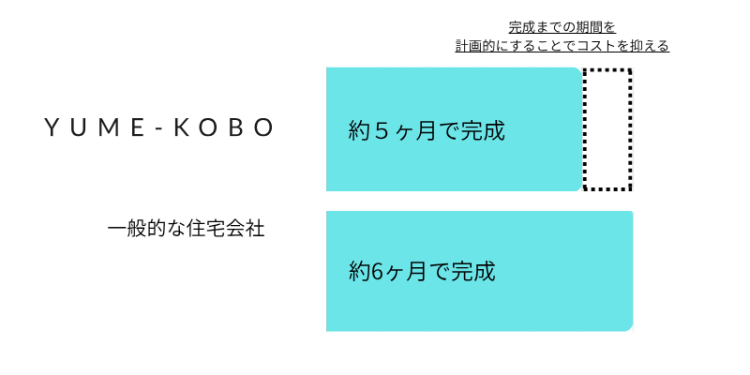 計画的な工程をとることで、完成までの期間中は無駄を抑え、総費用の圧縮につながるのです。