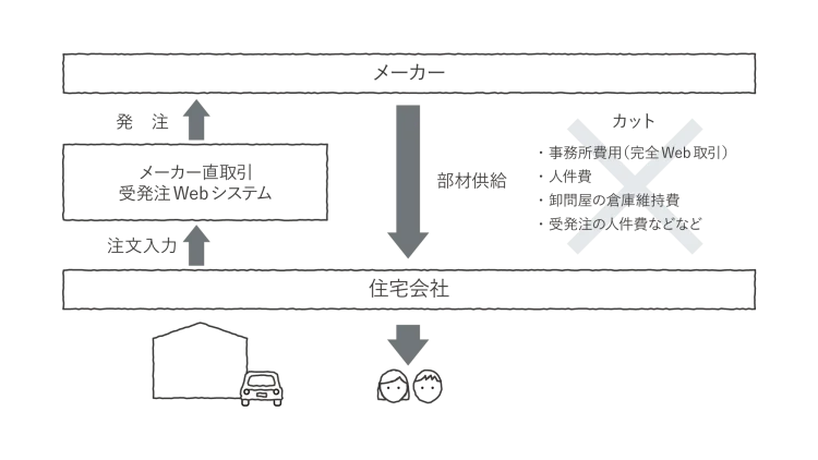 R+houseでは、建材メーカーから直接仕入れる仕組みを採用しています。
