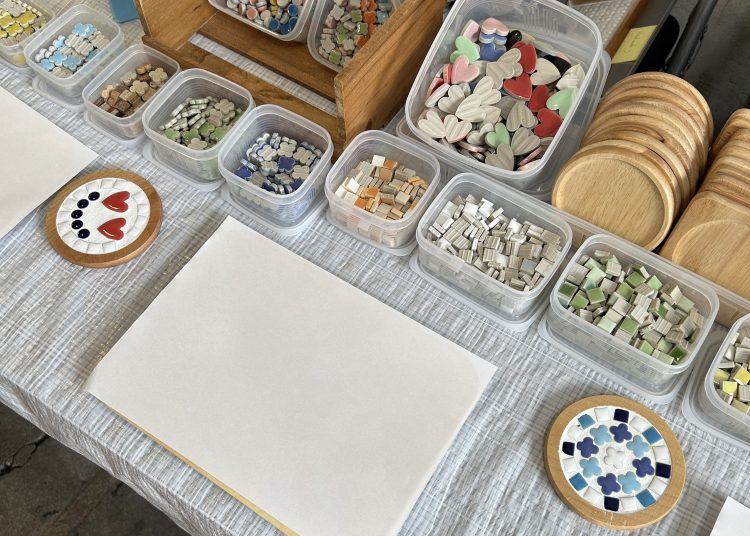 モザイクタイルを使ったコースターワークショップと布小物販売