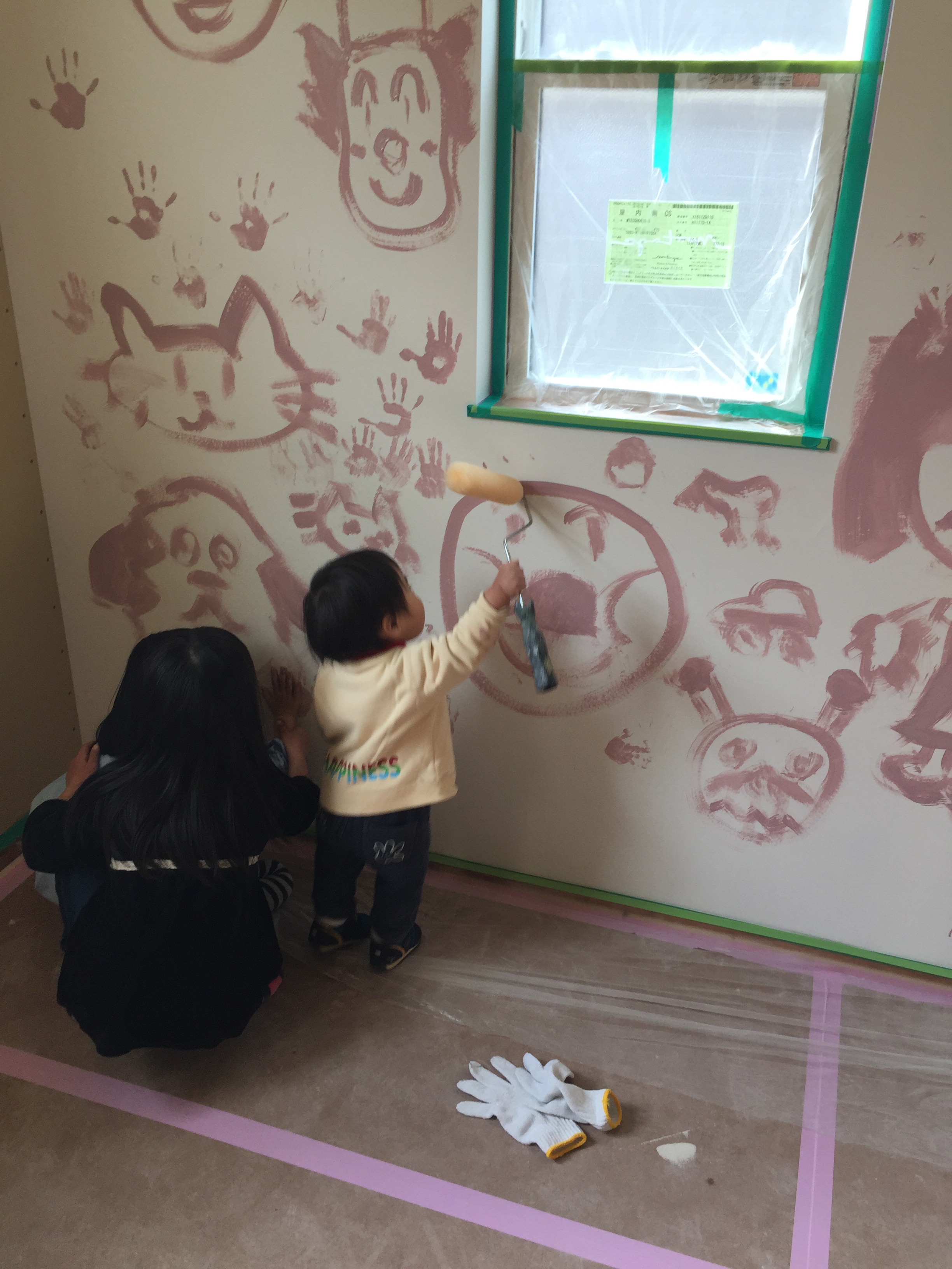 最初は自由にお絵描きしてもらいます。これもお家作りの良い思い出になりますね(≧∇≦)