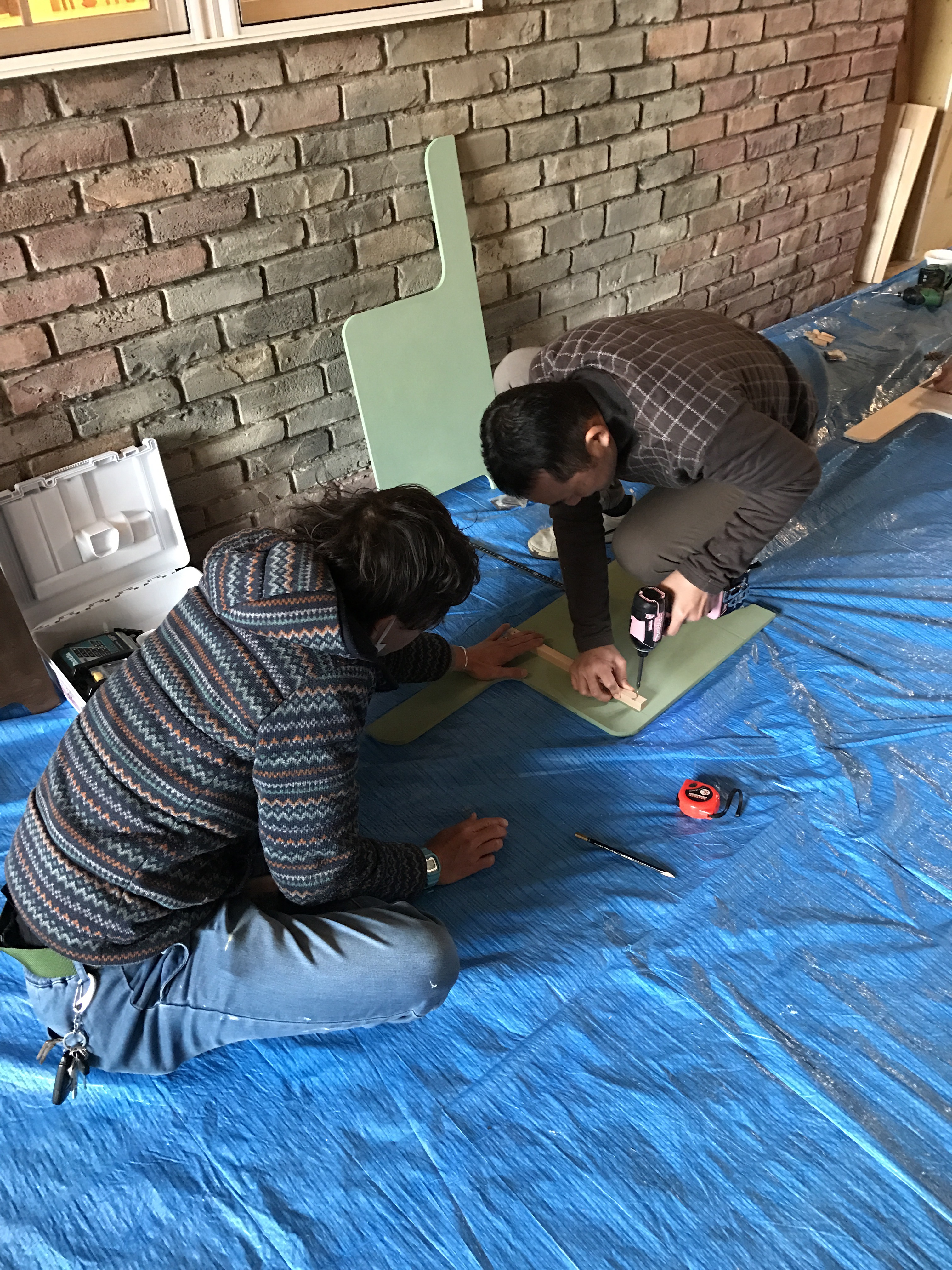 乾かしている間にお昼休憩を挟み、午後からはいよいよ組み立て!
