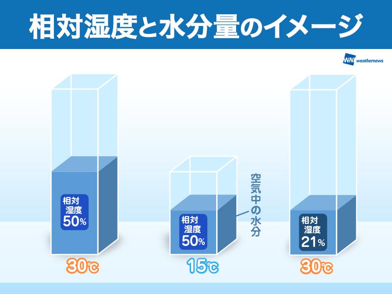 一番右の30℃と真ん中の15℃は同じ水分量です。