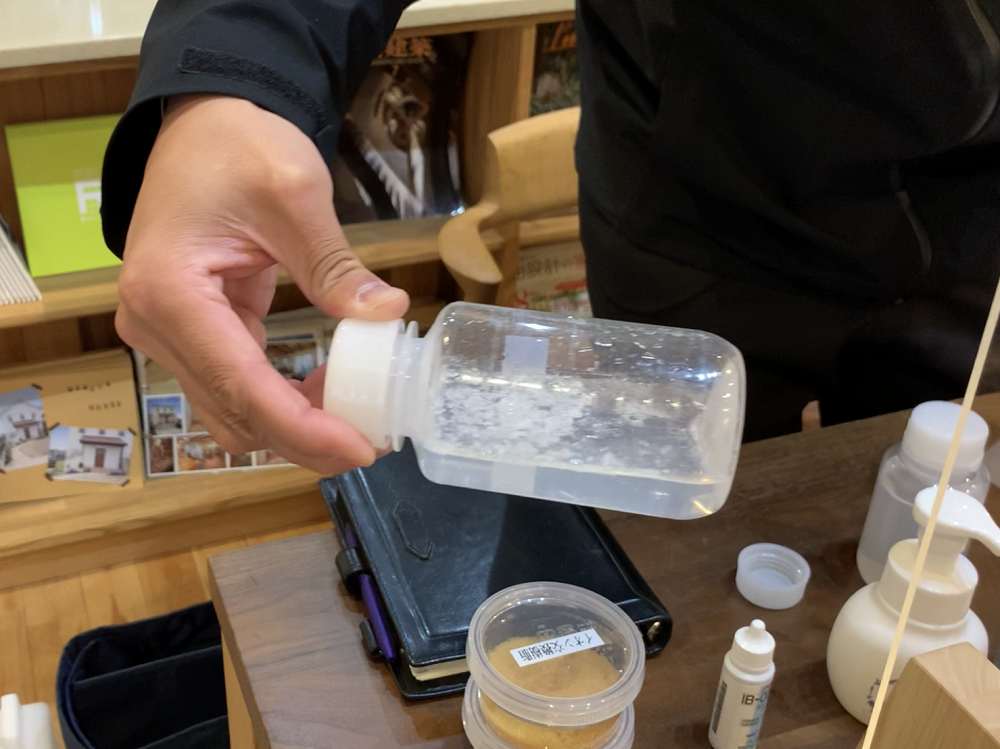比べていただくと泡立ちが良い軟水の水は透明に近いですが