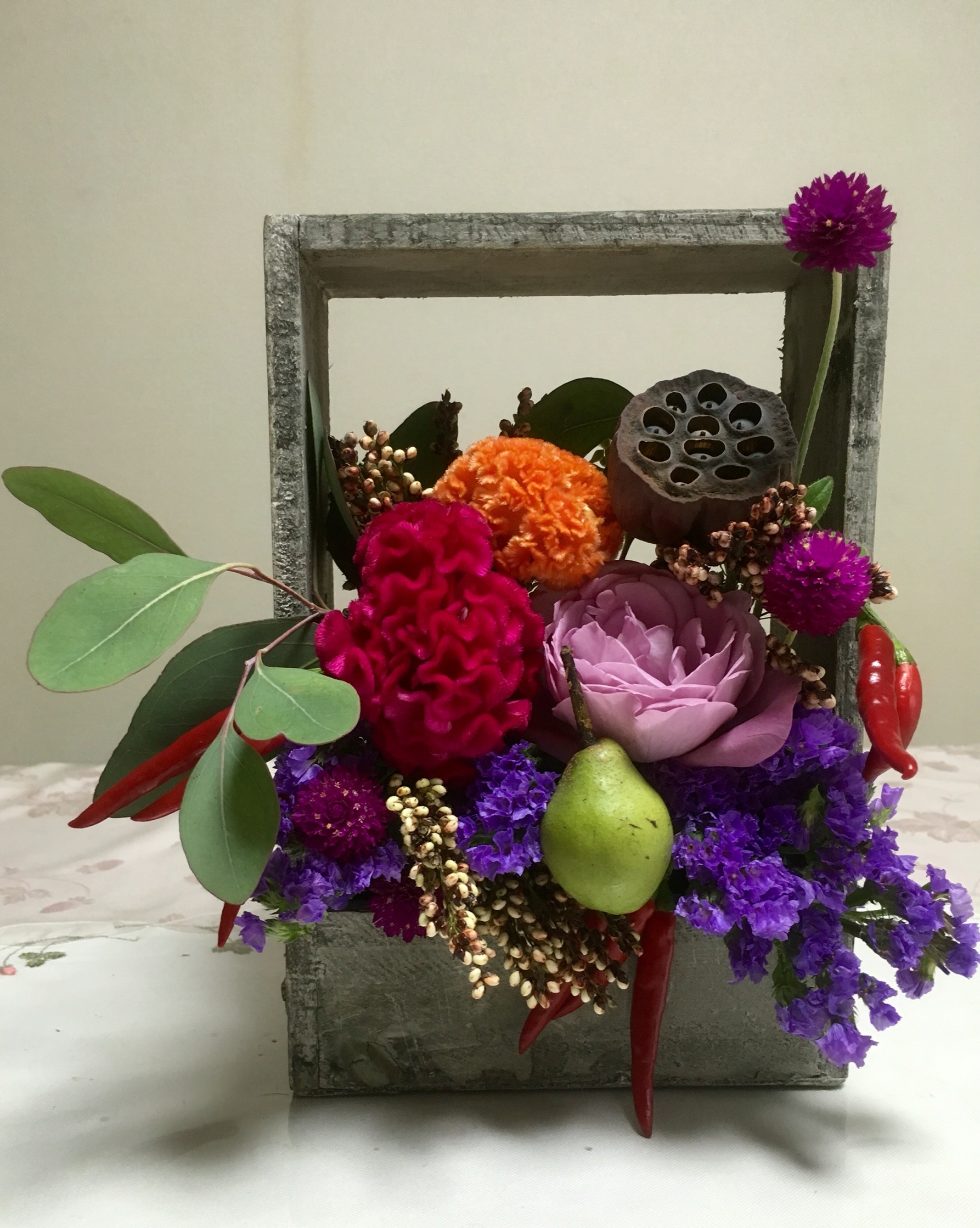 今回は額縁にお花が咲いているイメージのアレンジです。