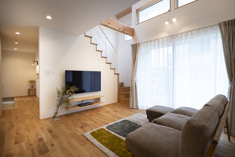 ちなみに日射遮蔽を考えて設計してくれているので夏場は西日があまり入ってこず、冬場はリビングの奥まで日が入ってきます。