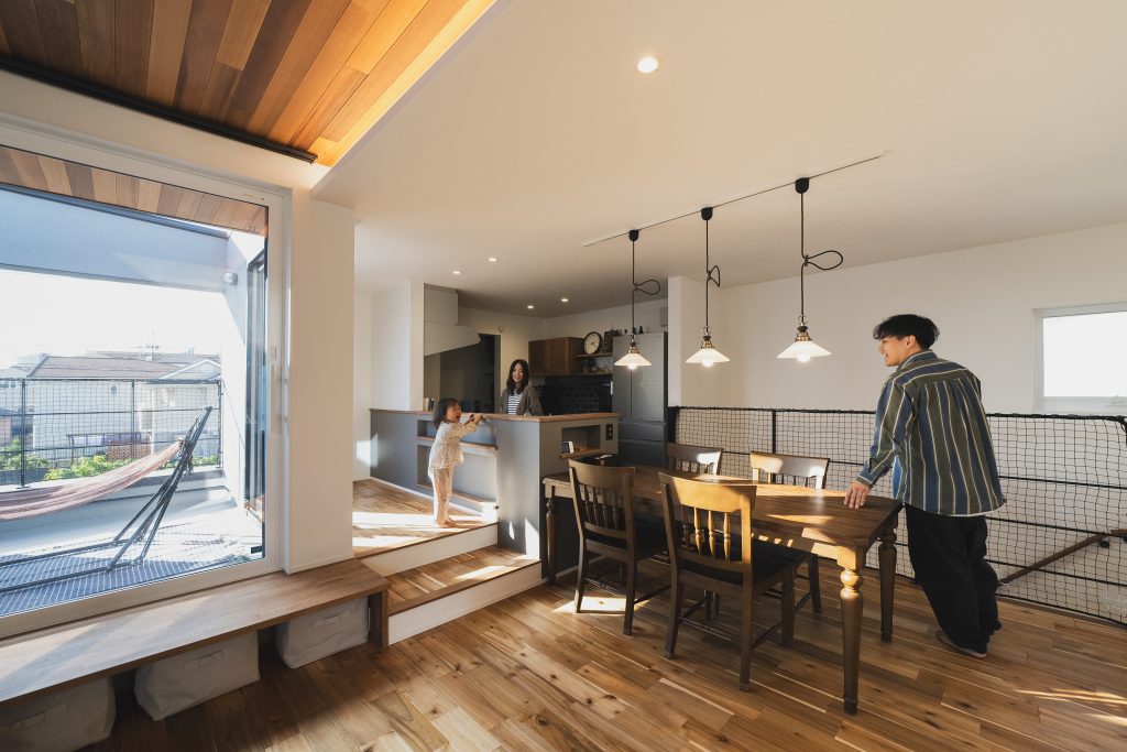 奥様:私は最初反対派だったんです(笑)老後を考えると、2階リビングはちょっと…って。それにバルコニーとしても広すぎると思っていました。でも「ここだけは絶対に譲れない。」と言うので折れましたね(笑)