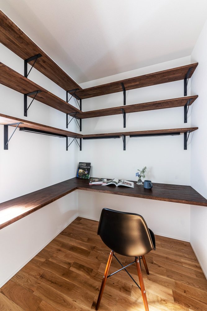 ご主人の書斎。仕事をしながらも、家族の気配を感じられる場所に。