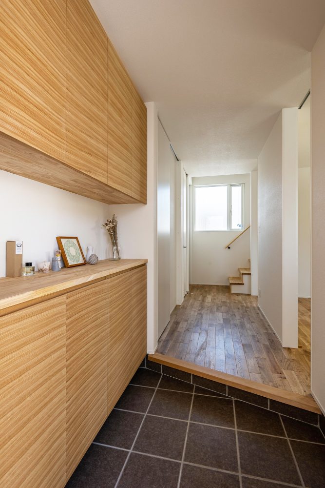 玄関周りに窓はありませんが、玄関を入った先の窓から明るい光が入り明るいです。