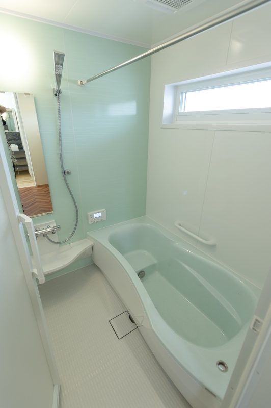 お風呂は水色ですっきりしたかわいさがあります