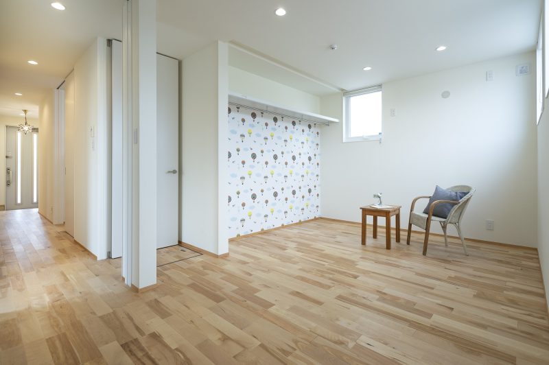 扉のないクローゼットの壁紙がかわいい子供部屋