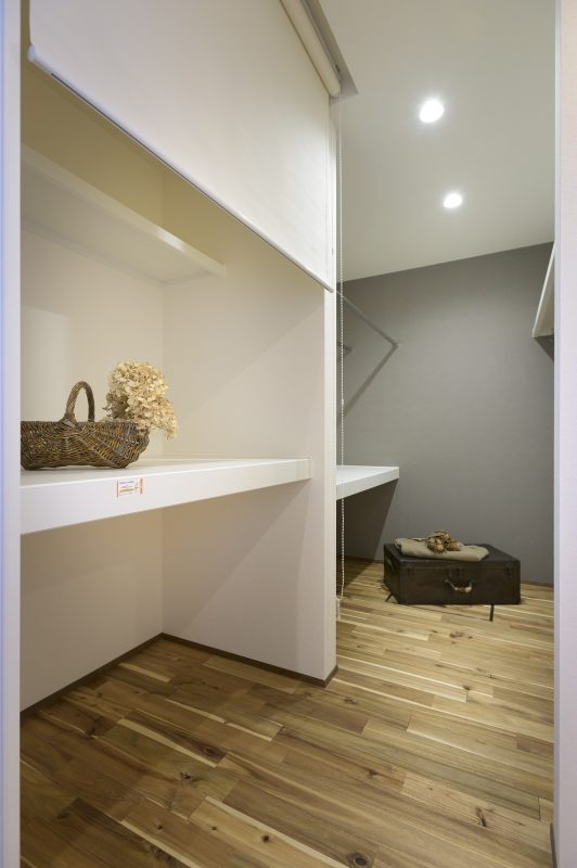 グレーのアクセントクロスが空間をパキッと引き締めています。