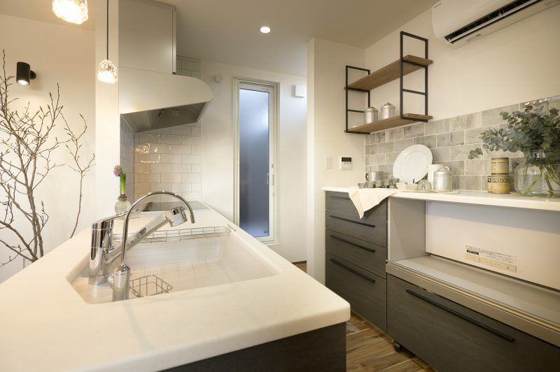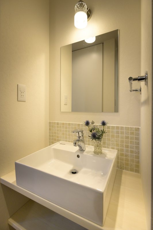 白ベースで統一された清潔感のある手洗い