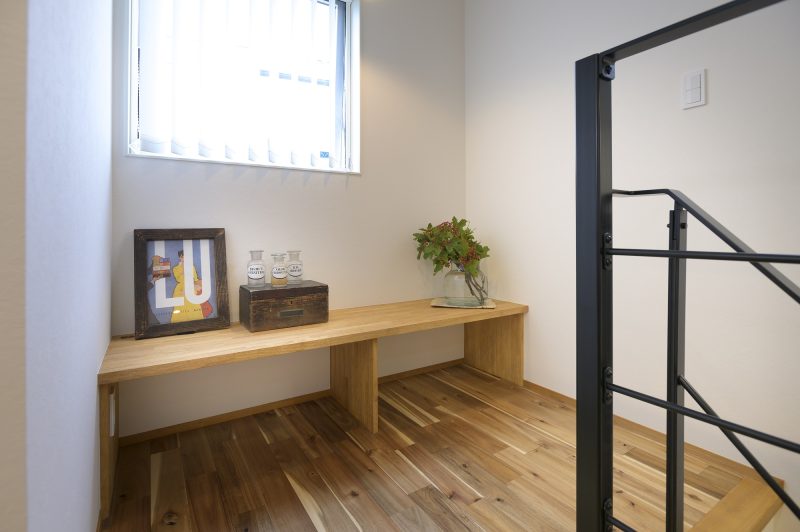 階段上のスペースも造作のカウンターを設けて有効利用
