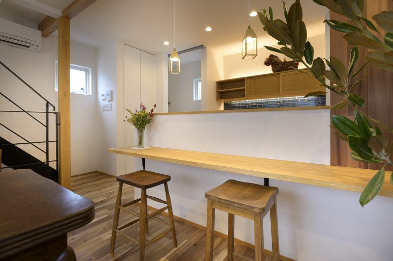 お酒好きなご夫婦が、バーのように楽しめるカウンターを設置