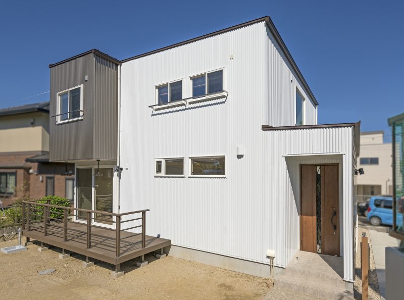 白い外壁とグレーの色合いがとってもスタイリッシュ。