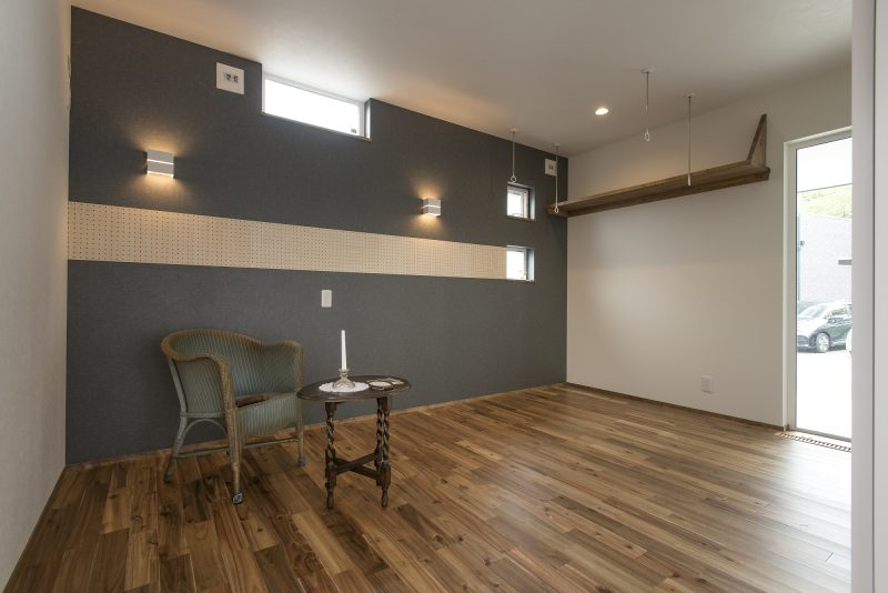 玄関横のシューズクロークには、趣味の自転車を壁掛けします。