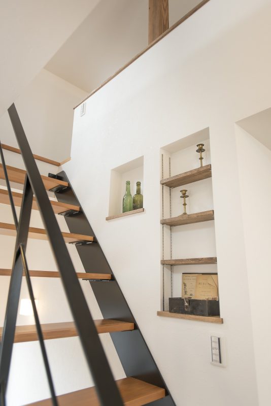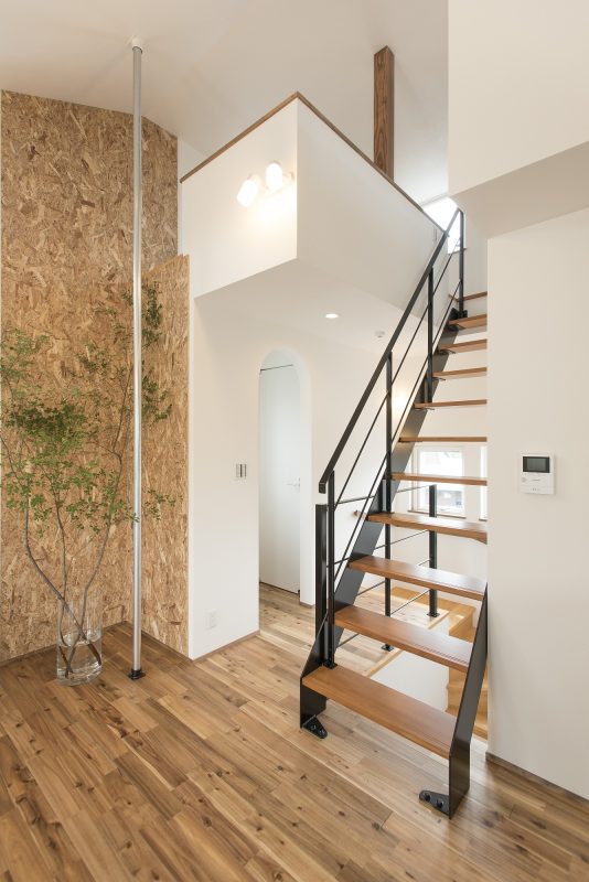 鉄骨階段にすることで、空間の広がりも感じられます。