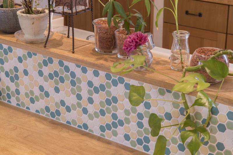 キッチンには名古屋モザイクのタイルを使用してこだわりを。