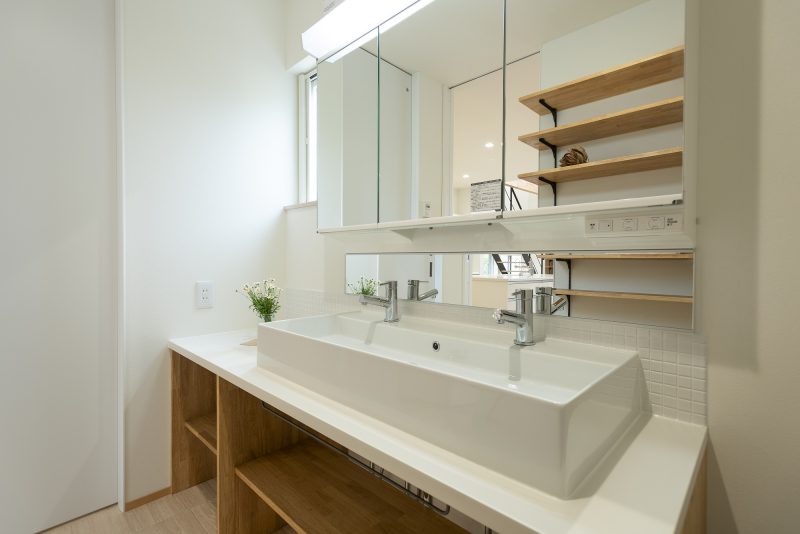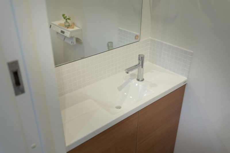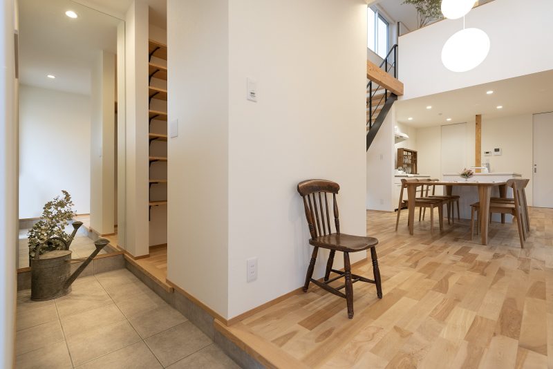 玄関は2wayに。大きな姿見は空間をより広く見せてくれます